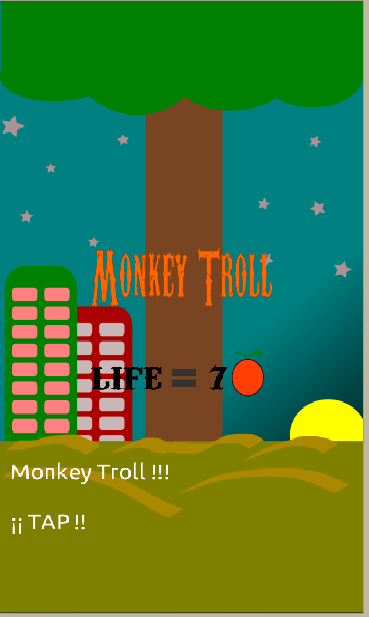 Hola les muestro este Juego que a sido creado en la plataforma de desarrollo Libgdx. Este es mi primer juego así que espero seguir mejorando con el tiempo. La jugabilidad es muy sencilla solo tienes que deslizar tu dedo de izquierda a derecha y evitar morir por los trolls lo máximo que puedas.Monkey Troll es un divertido juego Troll que se me ocurrió en mis vacaciones espero que les guste suerte. Bueno espero que Monkey Troll les guste y recuerden el juego es un poquito Troll.Mono troll un juego muy divertido de acción y por supuesto un juego Troll. Es una versión mejorada de MonkeyTroll. Le dedicare mas Tiempo a este Juego Que a MonkeyTroll. Espero que lo disfruten y se diviertan.